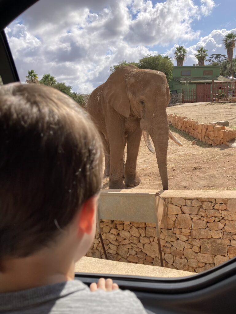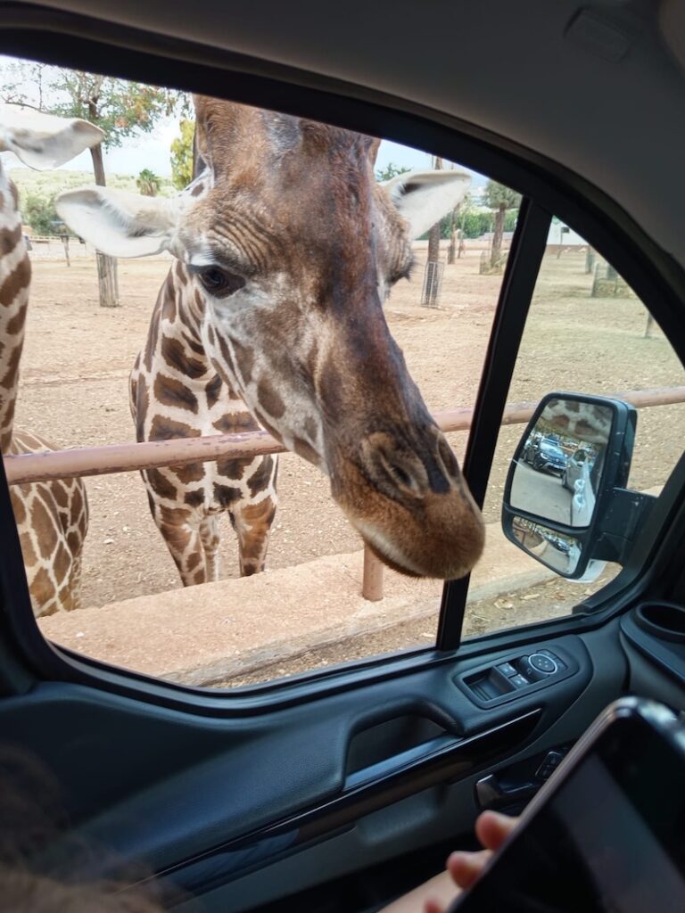 Hneď po vstupe do safari naše auto “obkľúčili” srnky. Vošli sme do klietky k levom 🦁 a tigrom 🐅. Celkom adrenalín – hlavne, keď sa niektorý pohol smerom k autu 😅. Potom sa okolo nás pohybovali zebry 🦓, somáre 🫏 a kozy 🐐. Filip nakŕmil žirafu 🦒😎 a ja som sa bála, že mi slon 🐘 chobotom ukradne telefón 😂